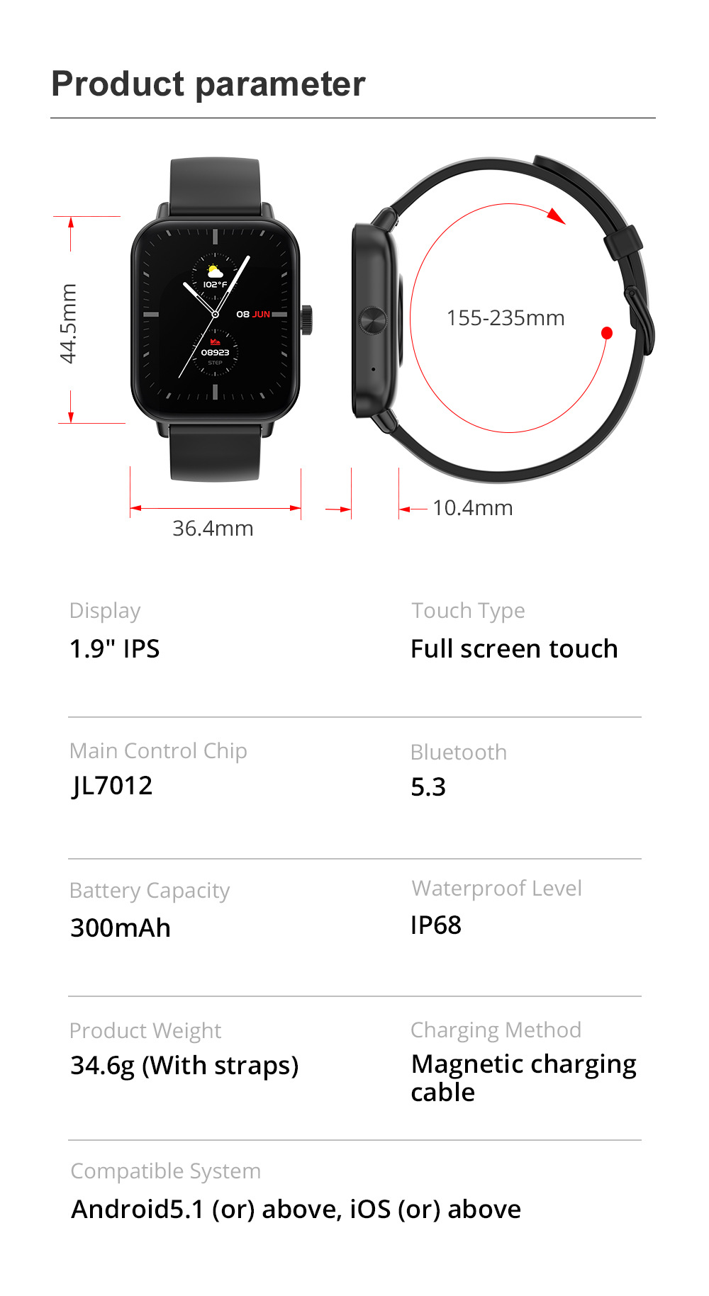 Package List: Watch * 1/instruction * 1/charging cable * 1