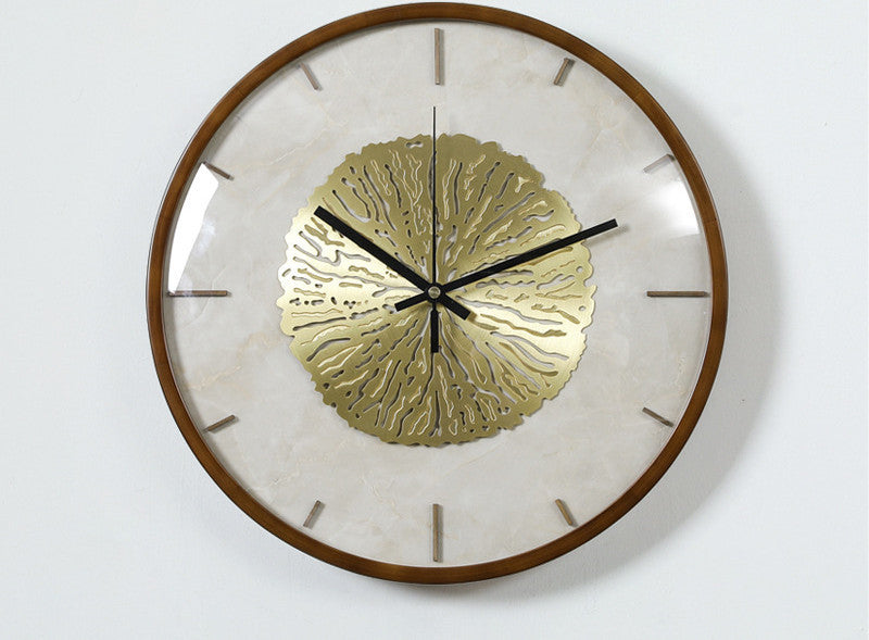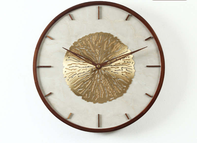 Brass Solid Wood Pointer Wall Clock Light Luxury Abalone Shell